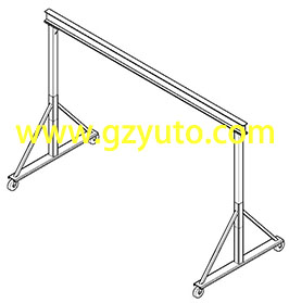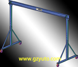 固定高度龍門吊的凈高固定, 而可調高度龍門吊的立柱可伸縮, 每節0.15米, 共6節, 調節范圍最大0.9米。 龍門架起重機通過4個腳輪移動, 萬向腳輪帶剎車。