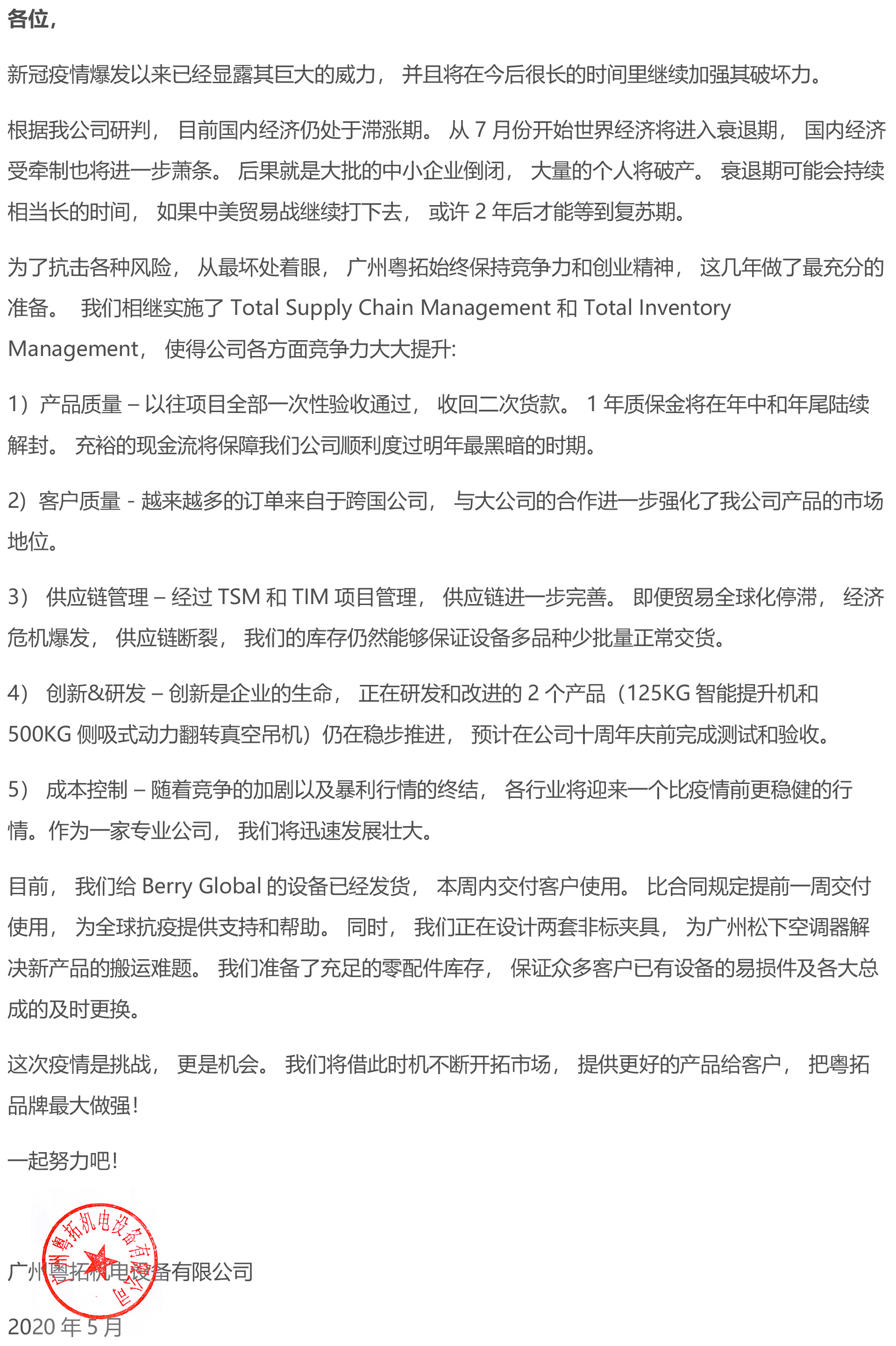 廣州粵拓機電設備有限公司(www.rdcgroup.com.cn)成立于2010年9月,是一家專門研發、生產和銷售高品質真空吸吊機,真空搬運機,真空吊等設備的專業廠家。真空搬運設備適用于各類紙箱,袋子,板材等物料的搬運,碼垛和裝卸。通過提供給客戶最關注的創新、高效、靈活和速度的搬運解決方案,以及無可比擬的質量和價格,廣州粵拓因此改變了市場需求。公司產品正通過各地許可經銷商銷往全國各地。